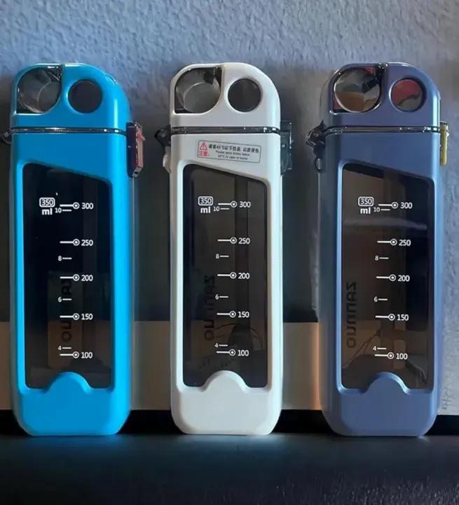 Sports Water Bottle 350ML,Leakproof Square Water Bottle with Straw, BPA Free Plastic Portable Drinks Bottle, Sturdy and Durable Flat Water Bottle for Sports, Fitness, Gym